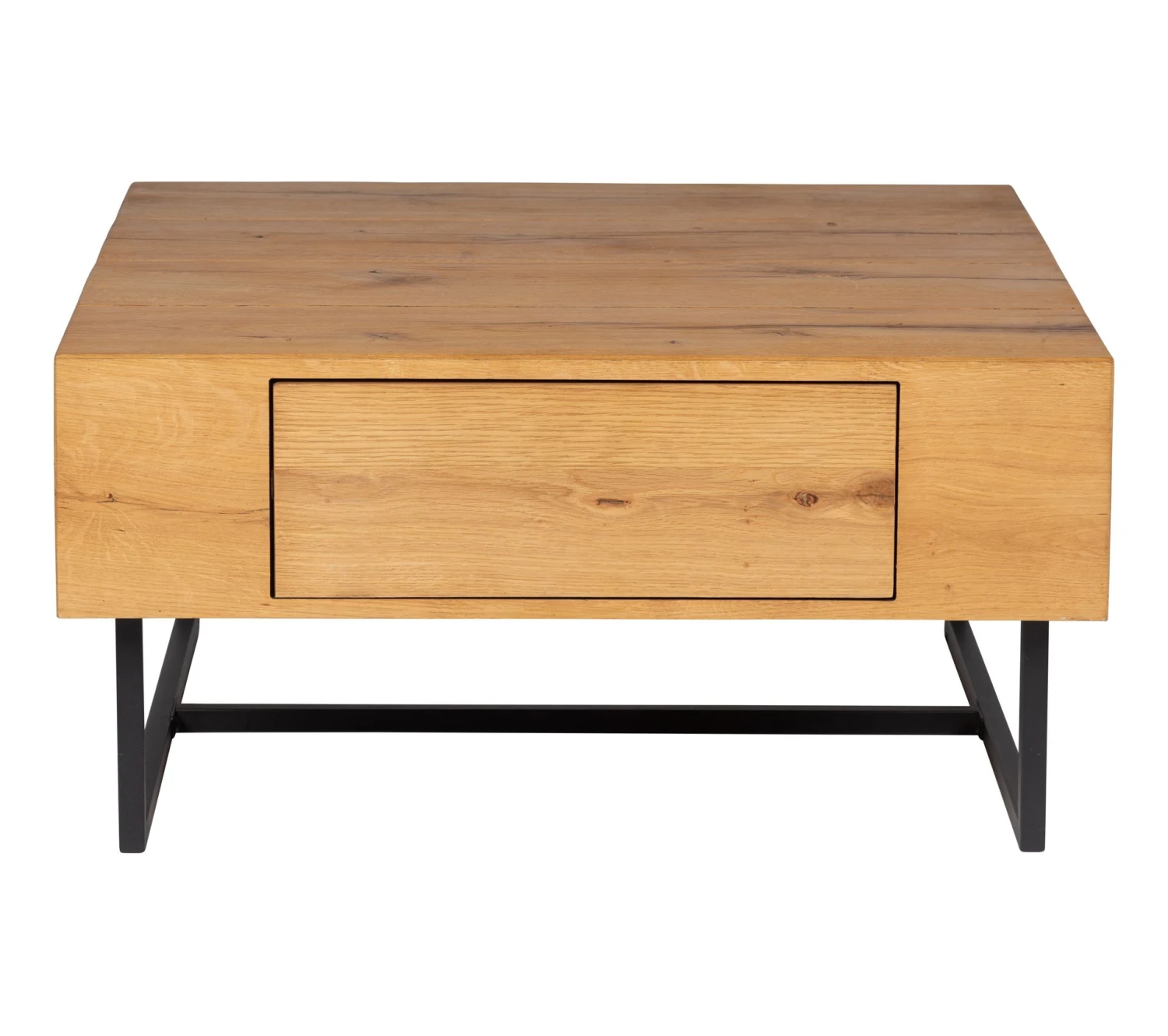 Cette table basse au placage chêne WOODS se distingue par sa finition en bois huilé, parfaitement mise en valeur par son piètement en acier recouvert d’époxy noir. Elle trouvera facilement sa place dans un salon de style factory, en complément d’un grand canapé club en cuir noir.