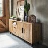 - Structure Dessus, côté et façade en Pin recyclé, Fond intérieur et étagères en bois de panneau de fibre de moyenne densité.