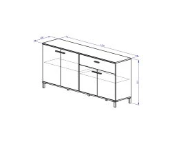 Difficile de résister à la praticité de ce buffet : ses quatre portes cachent un grand volume de rangement dont quatre compartiments à étagères et un grand tiroir. Utilisé comme vaisselier dans le salon ou comme meuble de rangement dans la chambre, ce buffet TRUST dispose d’un long plateau pour poser les objets de décoration. Simple d’entretien et facile à monter soi-même, ce buffet de L. 180 x H. 81 x P. 40 cm se distingue par sa faible profondeur : il s’intègre ainsi avec aisance dans la pièce de votre choix.
