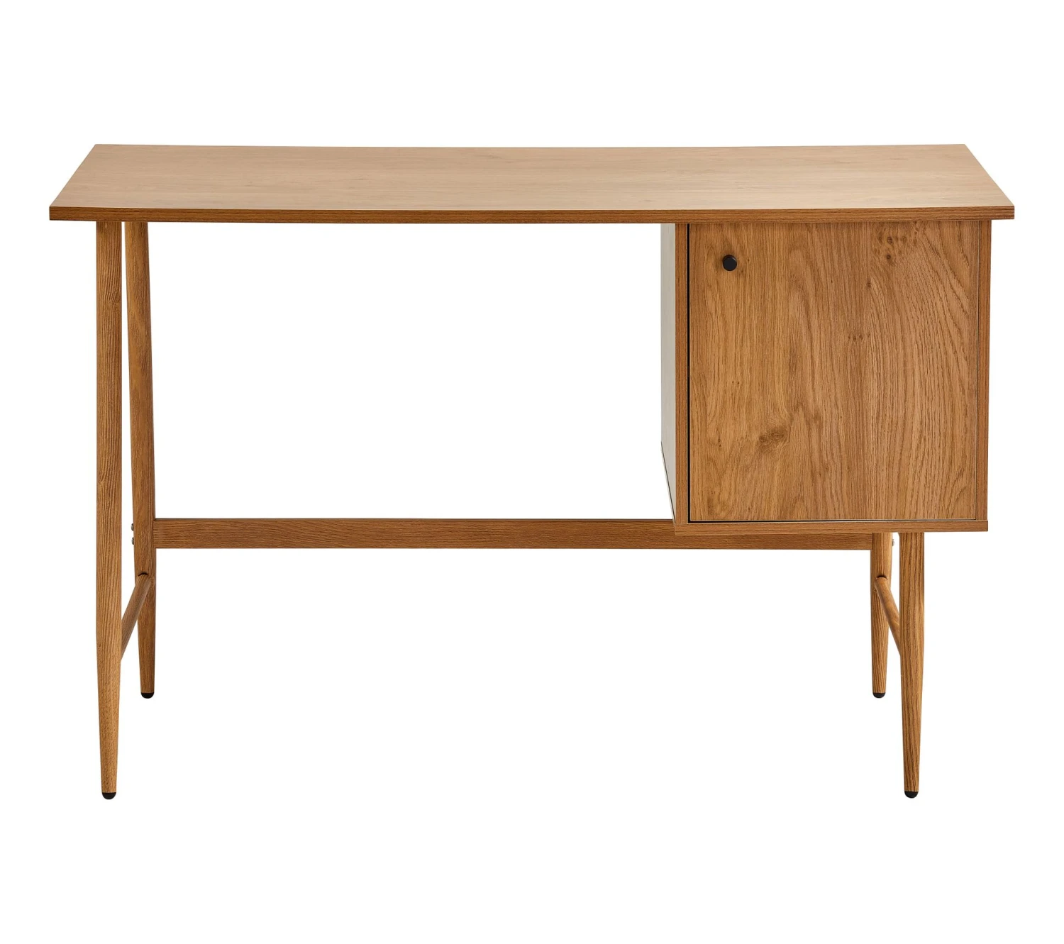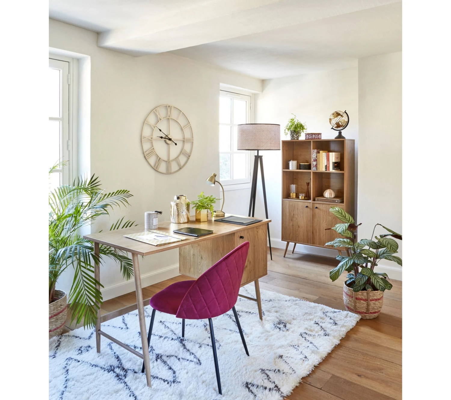 Ce bureau imitation chêne, en panneaux de fibres, se fait minimaliste. On peut l’intégrer au mobilier de la collection COLUMBUS comme à d’autres éléments design, par exemple un luminaire à ampoule apparente ou un fauteuil contemporain. La petite poignée en aluminium, au coloris contrastant, rehausse ce joli bureau.