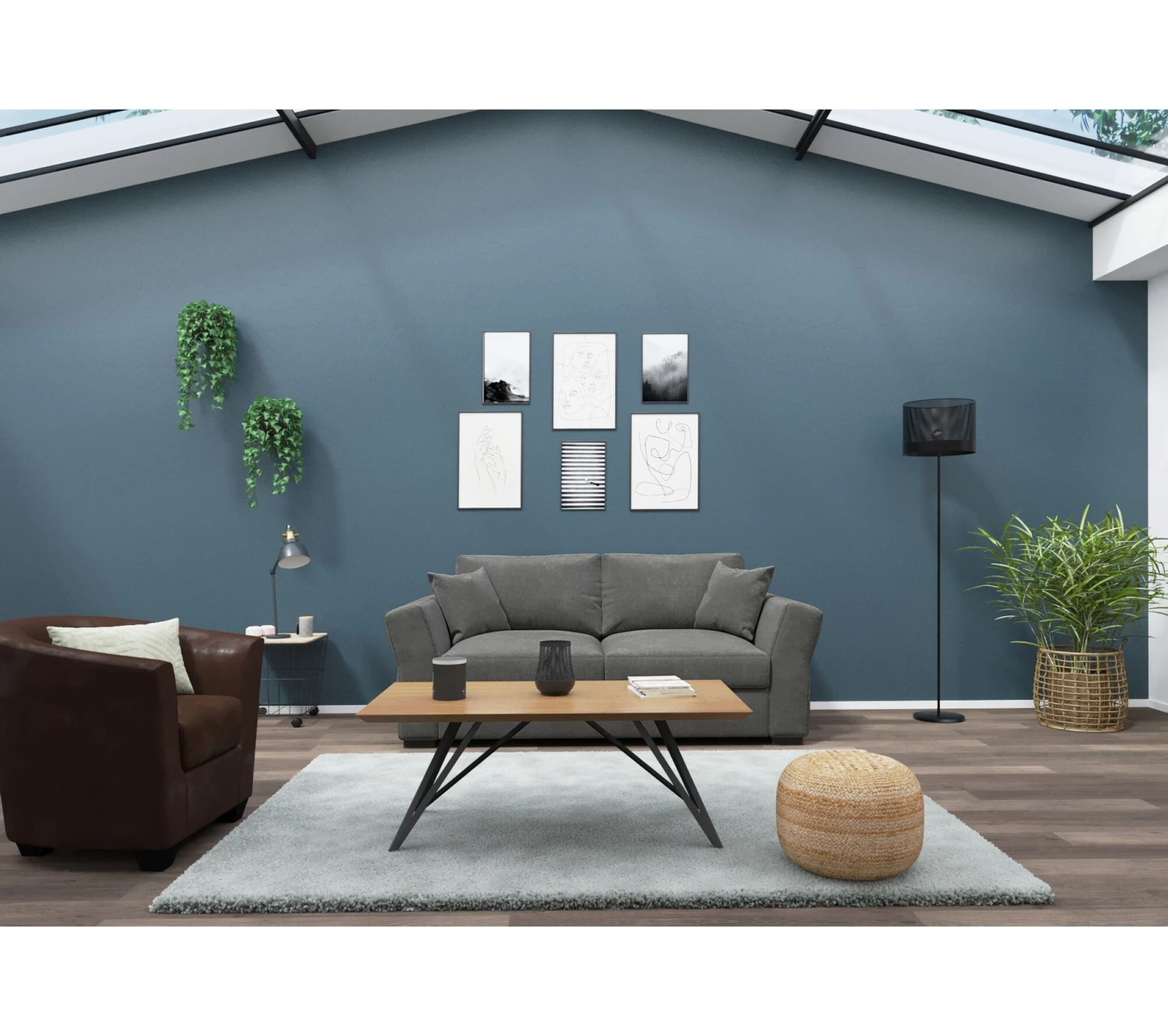 L’assise ferme de ce canapé 3 places est garnie de mousse polyéther de 28 kg/m3 et de ouate polyester de 200 g/m². Le dossier de ce canapé de L. 196 x P. 85 cm se compose quant à lui de flocons de mousse polyéther et de plumes de canard. Tout cela permet de s’assoir confortablement.