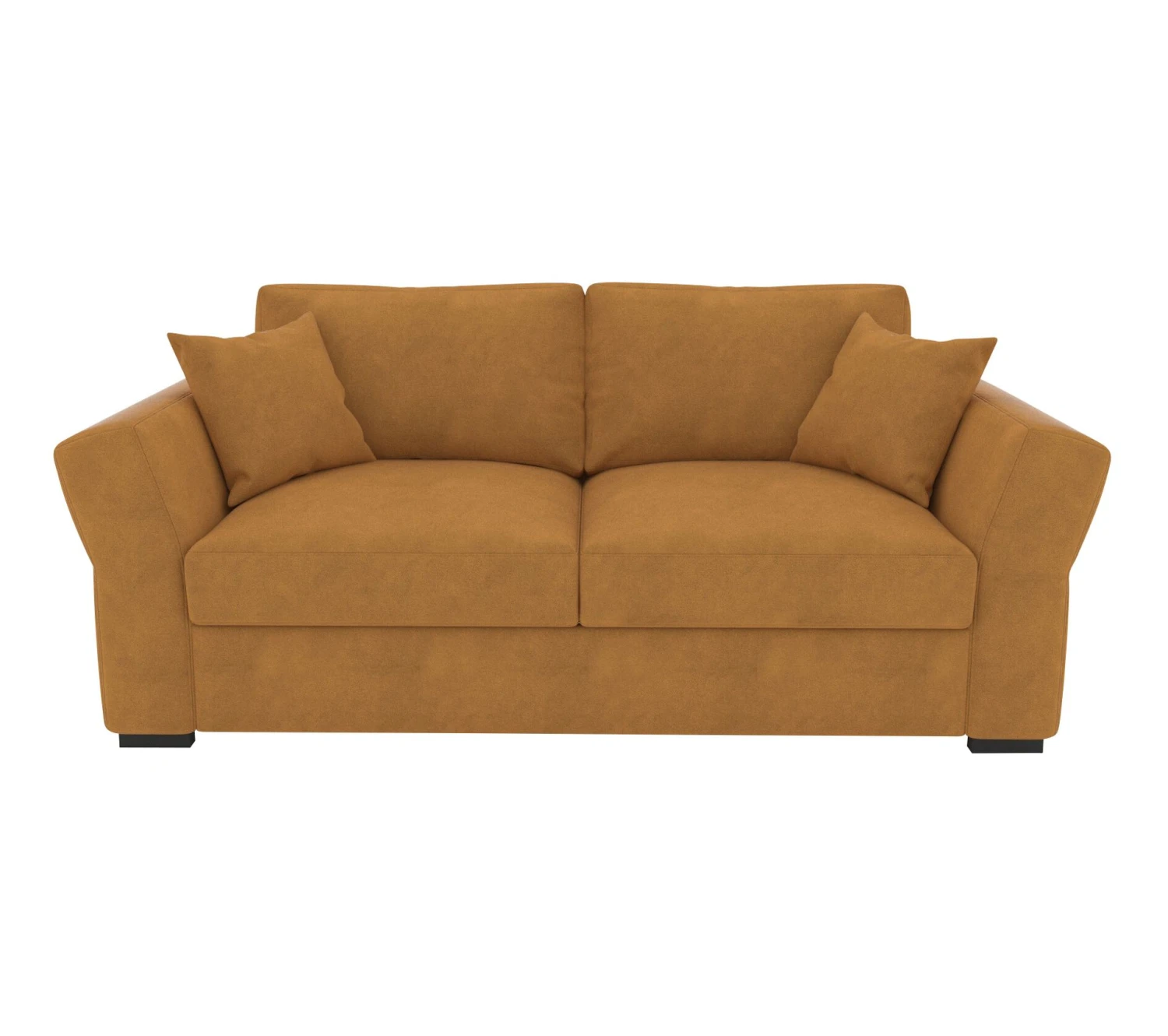 L’assise ferme de ce canapé 3 places révèle un grand confort. Pour cela, elle est agrémentée de mousse polyéther de 28 kg/m3 et de ouate polyester de 200 g/m². La garniture du dossier de ce canapé de L. 196 x P. 85 cm se compose de flocons de mousse polyéther et de plumes de canard.
