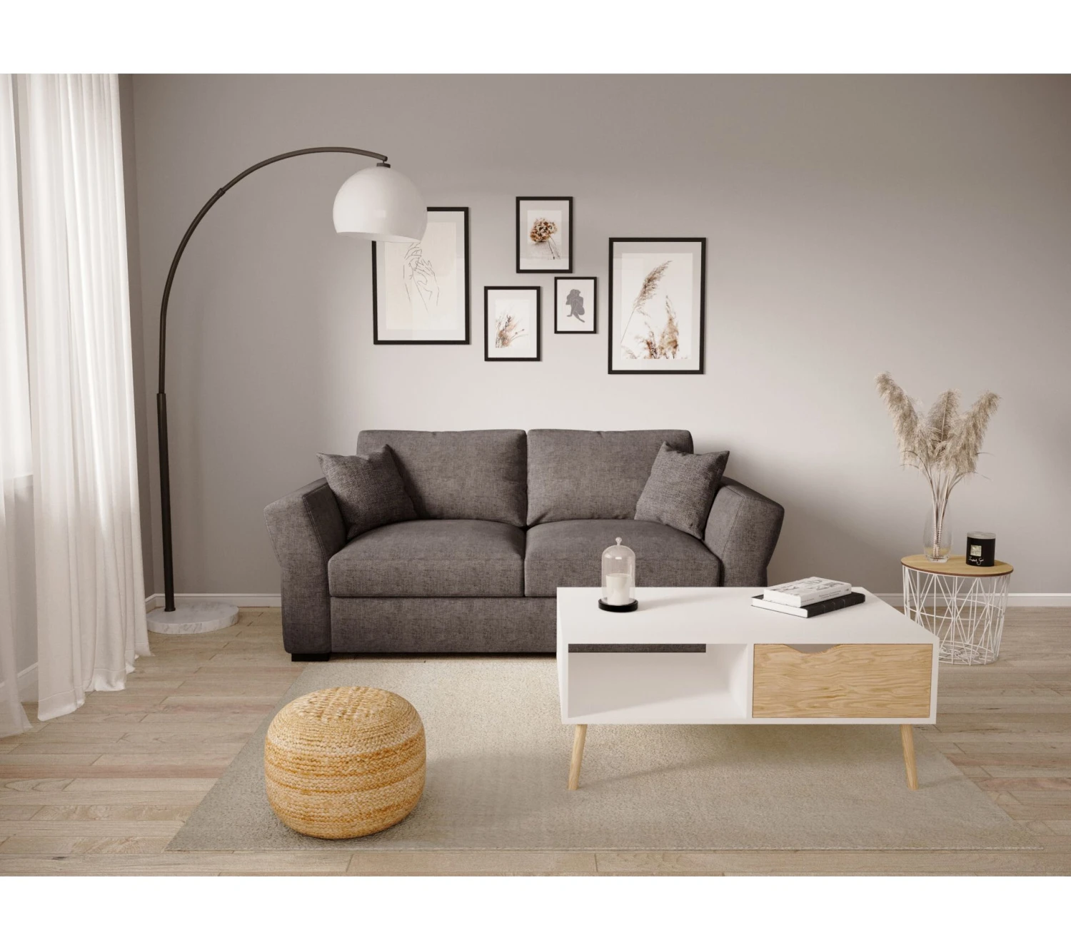 Ce canapé se compose d’une structure en pin, panneaux de particules et en panneaux de fibres de moyenne densité qui garantit une grande solidité. Quant au tissu, il est épais et résistant, ce qui permet de l’utiliser durant des années.