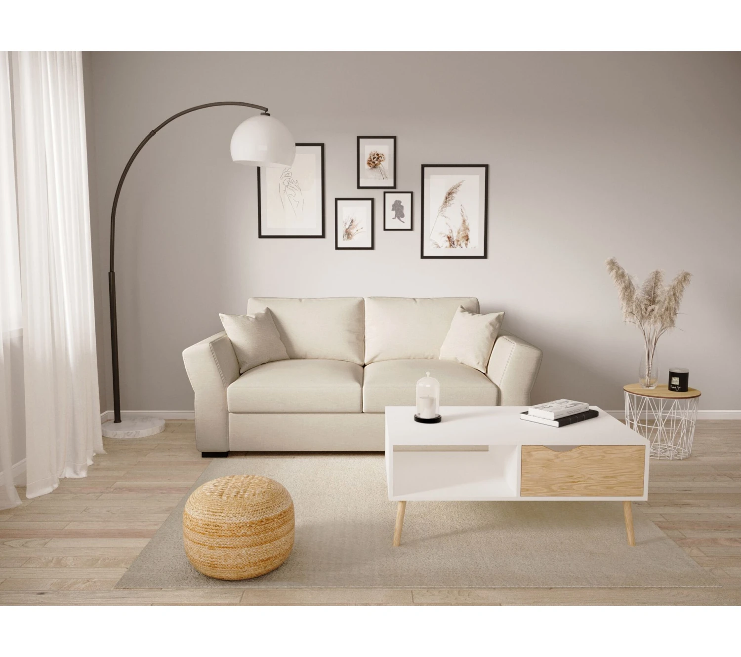Apportez de la lumière dans votre salon grâce à ce canapé CASABLANCA présenté dans un coloris lumineux et dans l’air du temps. Ce canapé sable s’accordera facilement au reste de votre décoration et créera une atmosphère épurée avec du mobilier clair. Pour une touche déco supplémentaire, ce canapé droit dispose de deux coussins carrés.