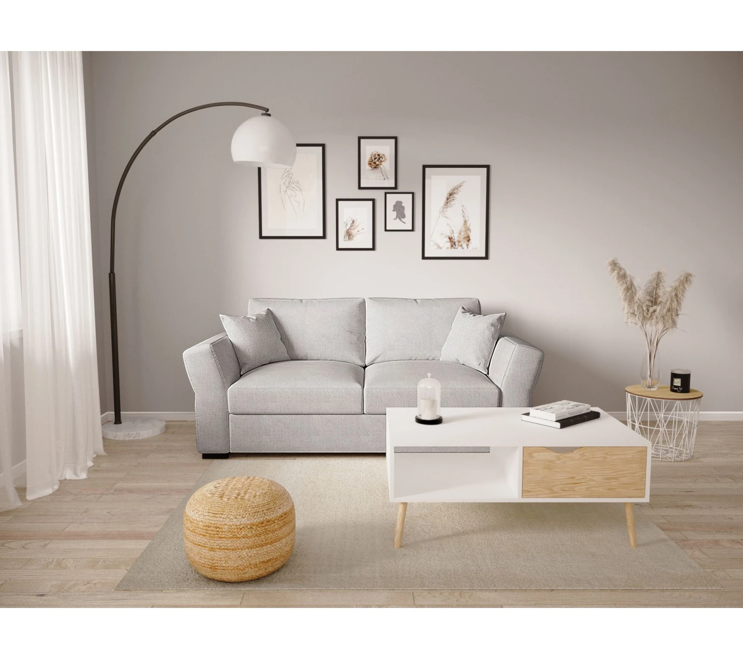 La structure de ce canapé réalisée en pin, en panneaux de particules et en panneaux de fibres de moyenne densité, prouvera sa robustesse au fil du temps. Le tissu épais est lui aussi solide et vous promet de résister efficacement aux nombreuses utilisations que vous en ferez durant les prochaines années.