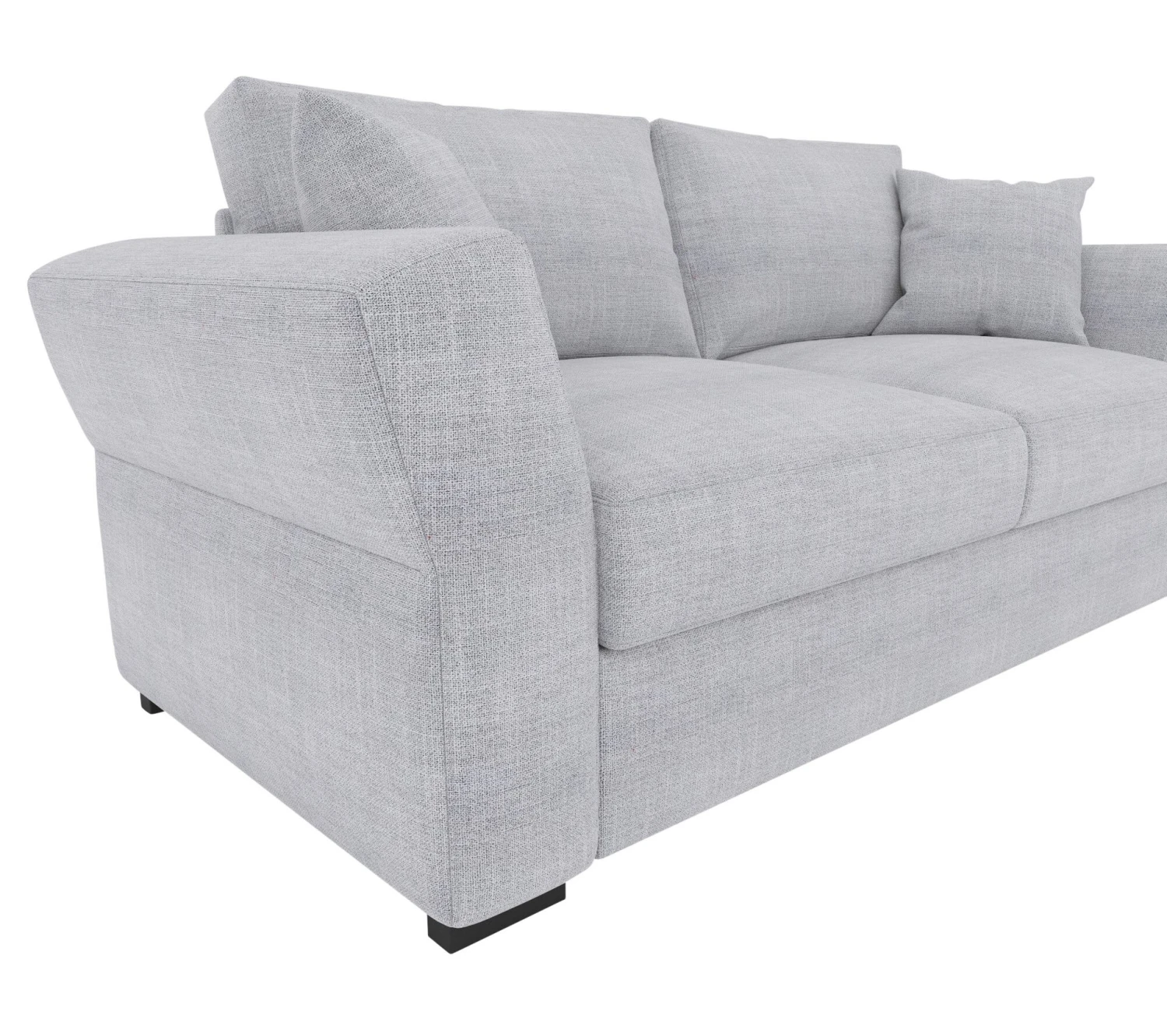 Installez-vous dans votre canapé 3 places et profitez d’un grand confort, grâce à son assise en mousse polyéther d’une densité de 28 kg/m3 et ouate polyester 200 g/m². Le dossier moelleux de ce canapé gris clair est constitué de 75 % de flocons de mousse polyéther et de 25 % de plumes de canard.