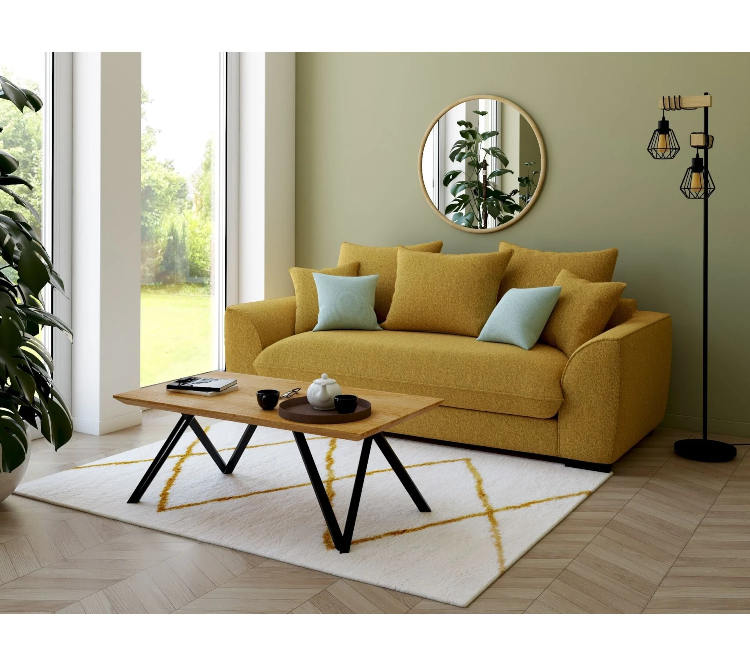 Budget 😍 TIME Canapé 3 places SAGA tissu polaris curcuma 10 ❤️