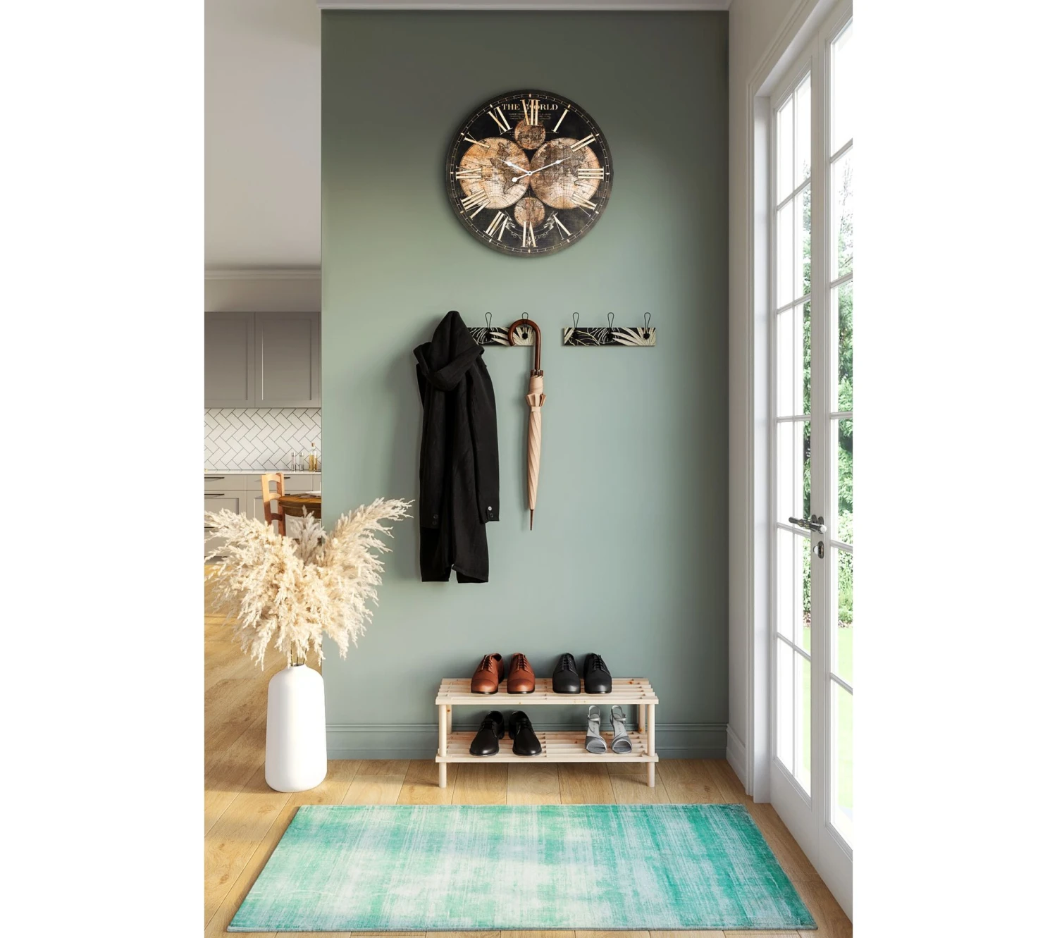 Craquez pour cette horloge noire et dorée dont le fond décoré représente une carte du monde. Son style vintage se mariera facilement avec du mobilier ancien ou avec des meubles contemporains, selon vos préférences. Conçue en panneaux de fibres de moyenne densité, elle est légère et se fixe directement au mur.