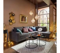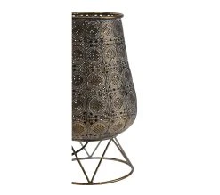 Cette lampe dorée antique imite le charme des luminaires indiens traditionnels. Elle sera parfaitement à sa place dans une décoration ethnique ou exotique, associée à une collection de lanternes et de coupelles dans des tons bronze vintage. Elle se nettoie facilement avec un chiffon en microfibre légèrement humidifié.