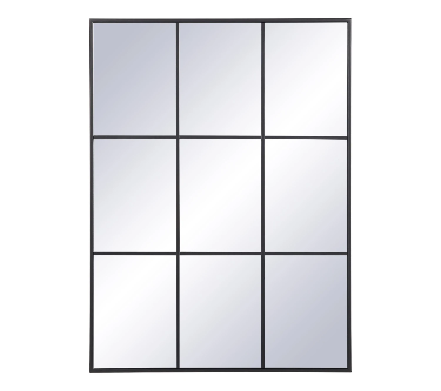Un miroir pour agrandir la piècePour agrandir vos espaces ou cloisonner une pièce de vie, installez ce superbe miroir RACHELLE à effet verrière. Accroché au-dessus d’un buffet ou de la cheminée, il offre un jeu d’optique original. Dans l’entrée, il apportera de la profondeur à un petit hall. Ce miroir de dimensions 60 x 81 cm est composé de plusieurs sections séparées par des barres en métal. Véritable atout dans la décoration de votre intérieur, ce miroir est parfait pour illuminer une pièce un peu sombre. Pour le nettoyer, utilisez simplement un peu de liquide nettoyant posé sur un chiffon doux et non pelucheux.Un accessoire précieux pour la maisonCréez un décor inspirant avec ce miroir en verre et métal noir. Il s’invite avec élégance dans une bibliothèque, une cuisine ou dans le salon. Sa structure en métal et verre offre une petite touche industrielle à vos espaces de vie. On apprécie son effet trompe-l’?il, ses formes fluides et son effet verrière irrésistible.