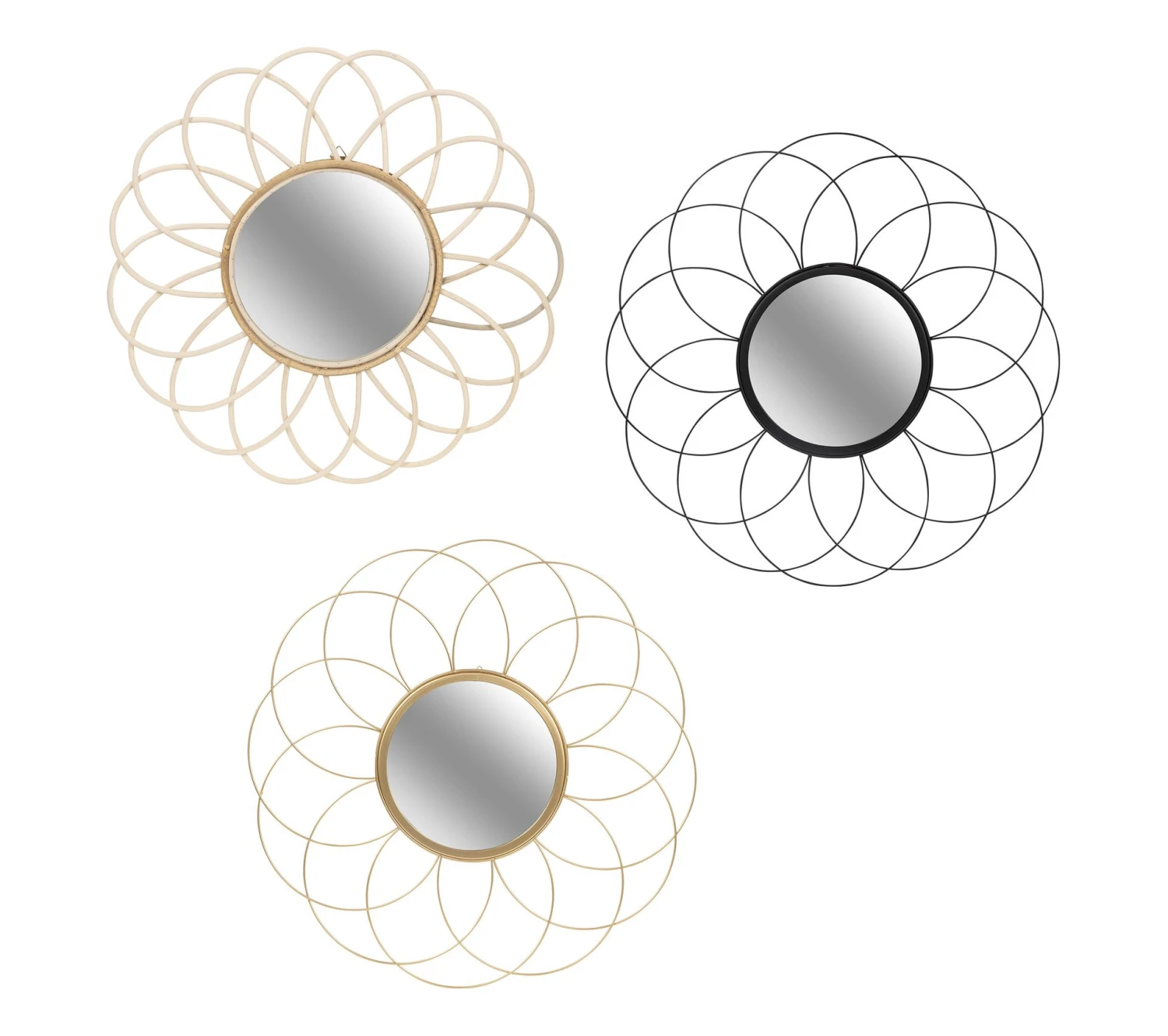 La rosace en fil de fer qui entoure ce miroir noir fait tout son charme. Pour la mettre en valeur, assortissez votre miroir d’autres bibelots et décors muraux en fil de fer. Ce miroir moderne et original trouvera aussi facilement sa place dans une chambre, une entrée ou un salon.