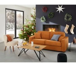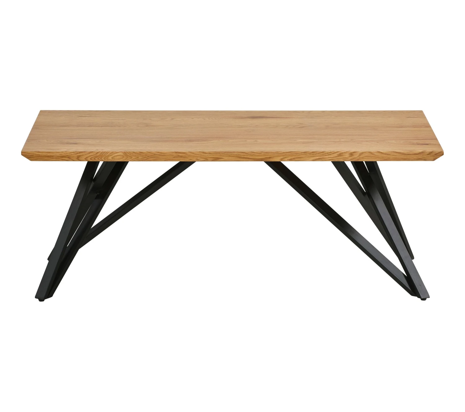 Avec son plateau biseauté recouvert de papier décor imitation chêne et son piètement oblique en tubes noirs en acier, cette table basse Andrea offre des courbes à votre intérieur. Son design contrastant qui associe l’effet bois au métal apporte du caractère à une pièce à la déco industrielle ou vintage.