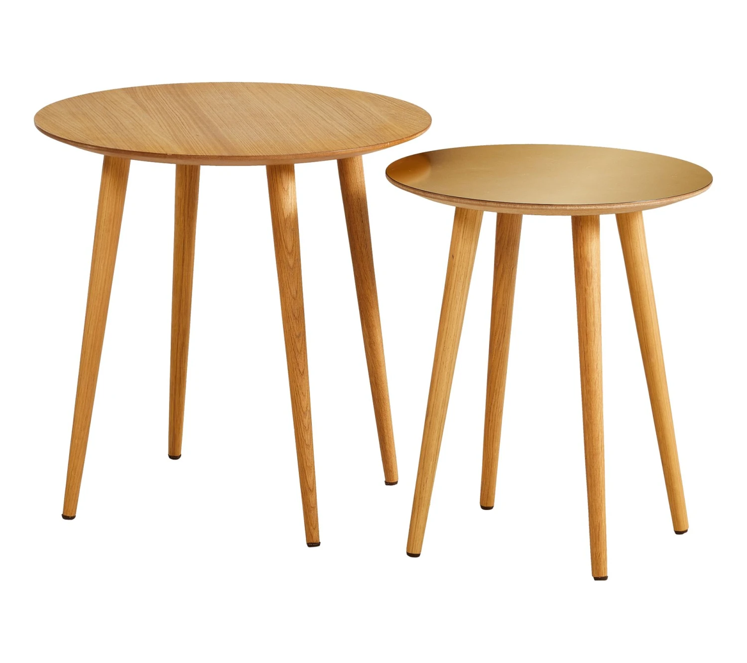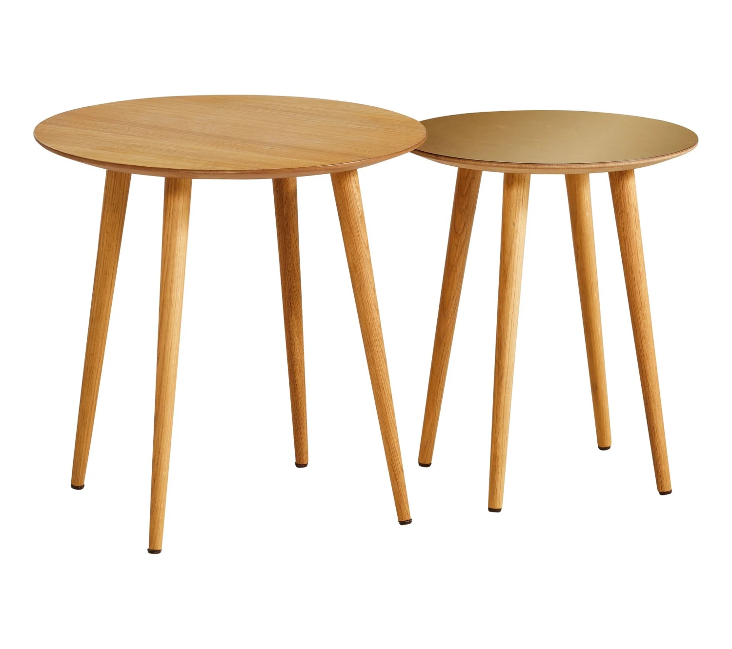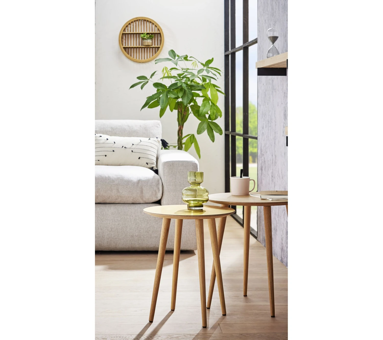Ces tables basses rondes gigognes chêne et or s’avèrent parfaites pour rejoindre un style de vie un brin bohème ou un décor inspiré de la nature. Elles se marient à merveille à des paniers, des plantes volumineuses, des fauteuils cosy et des tapis à motifs. Un véritable coup de c?ur.