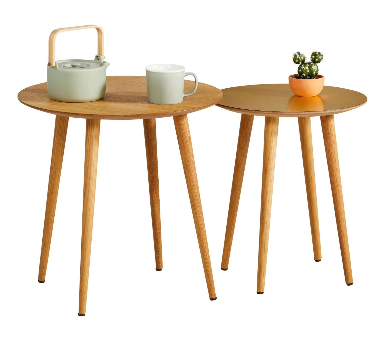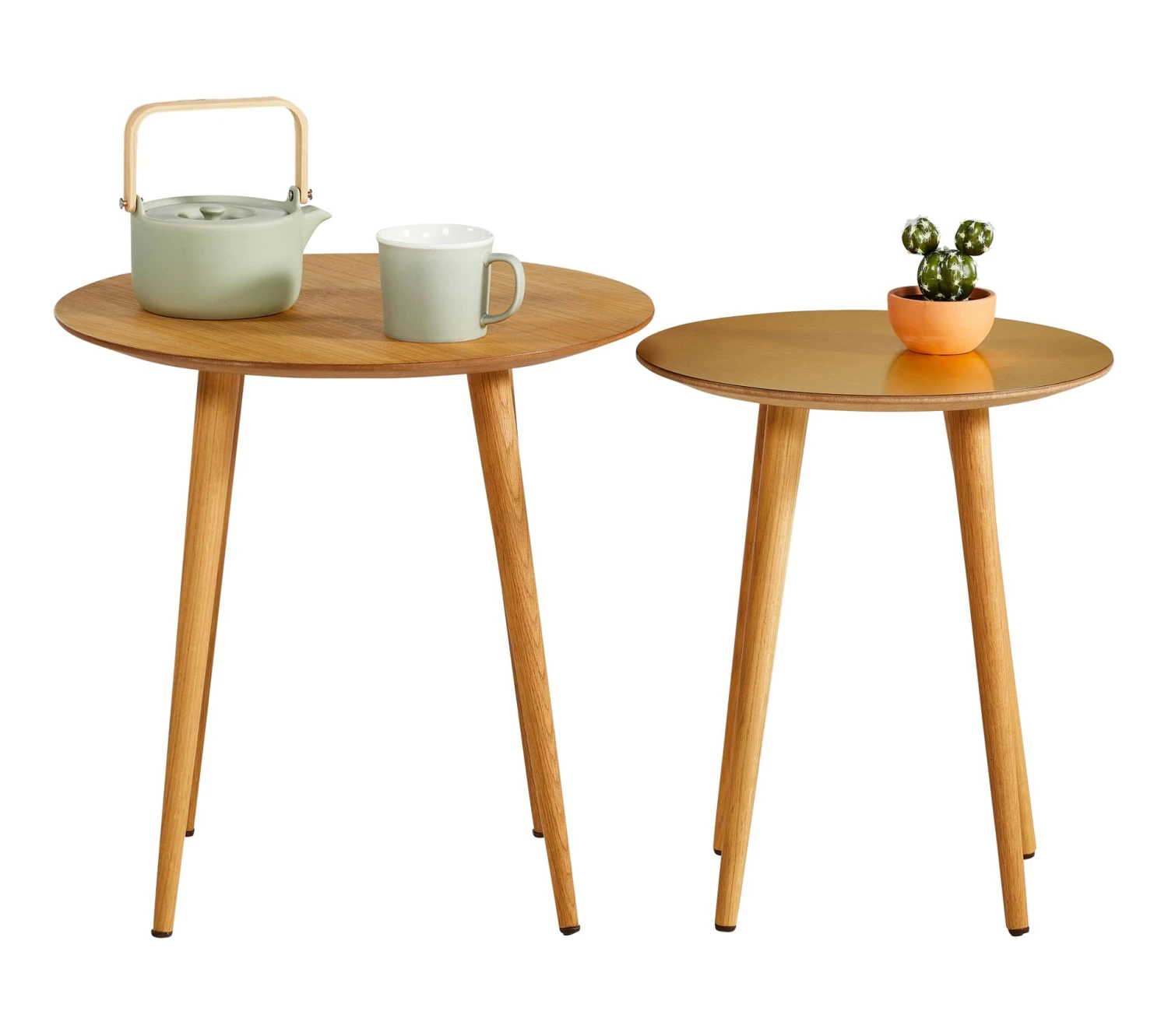 On adore ces tables basses rondes gigognes LOLA TIME, qui viendront sublimer un salon ou une véranda avec brio. Ces tables basses rondes gigognes L. 50 x H. 50 x P. 50 cm et L. 40 x H. 47 x P. 40 cm se composent de deux éléments de tailles différentes, l’un petit, l’autre grand. Ces tables aux plateaux arrondis et aux pieds légèrement évasés peuvent être placées côte à côte ou séparées. On prend soin de ces tables basses rondes gigognes à l’aide d’un chiffon à poussière, tout simplement.