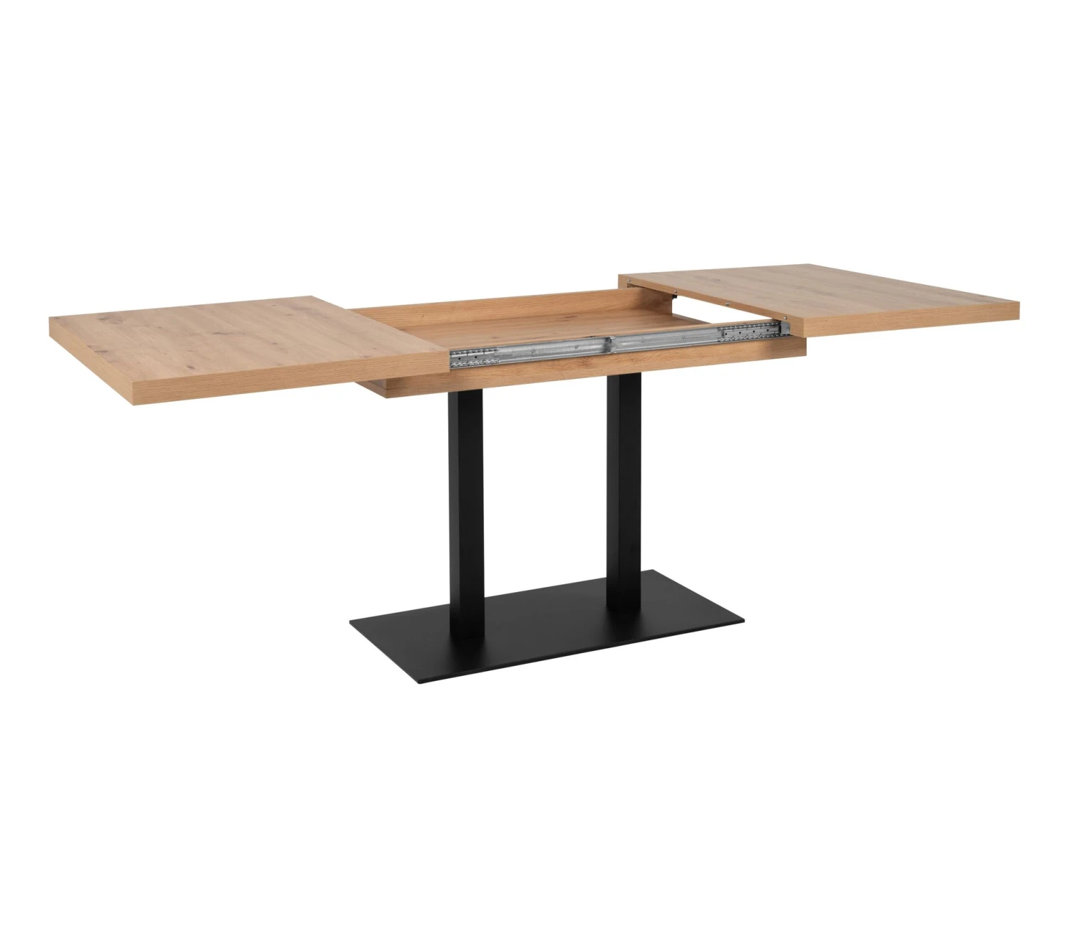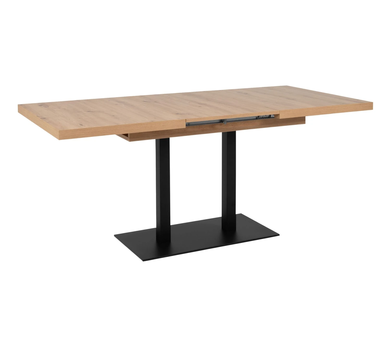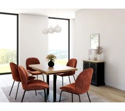 Cette table imitation chêne et noirs’inspire du style industriel. Sa structure en panneaux de particules repose sur un piètement en métal. L’ensemble est à la fois solide et résistant au fil des années. Votre nouvelle table de L. 120 / 172 x H. 75 x P. 80 cm est garantie 2 ans.