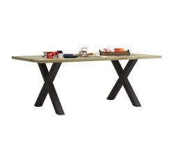 La table BAXTERse distingue par son contraste de matières qui offre un résultat contemporain. En effet, le plateau est fabriqué en panneaux de particules d’une épaisseur de 38 mm, revêtus de papier décor. Il est soutenu par 2 pieds en X constitués d’acier laqué noir à la finition mate. Aves ses dimensions généreuses, cette table de 200 cm de long peut accueillir 6 à 8 personnes autour d’un bon repas. En ce qui concerne l’entretien, il suffit de la dépoussiérer régulièrement avec un chiffon à microfibres. De fabrication française, ce mobilier est couvert par une garantie de 2 ans.