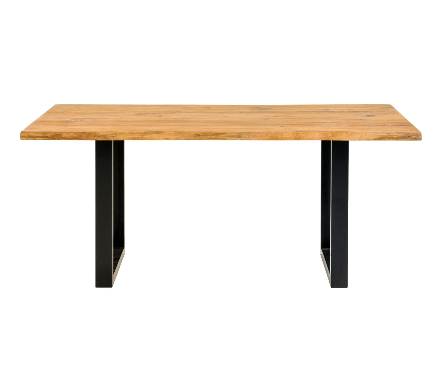 Fabriqué en chêne massif, le plateau de cette table rectangulaire ne ressemble à aucun autre : en témoignent ses bords irréguliers et son veinage aux dessins variés. Associant le bois et l’acier, cette table EMMA trouve sa place dans un décor de style industriel, auquel elle offre une touche unique.
