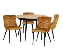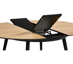 Cette table dotée de pieds de forme compas, présente un style scandinave très contemporain. Vous pourrez compléter la décoration avec un tapis à motifs, des paniers en osier et une suspension en bois. Cette table ronde noire et imitation chêne peut aussi trouver sa place dans un intérieur industriel ou contemporain.