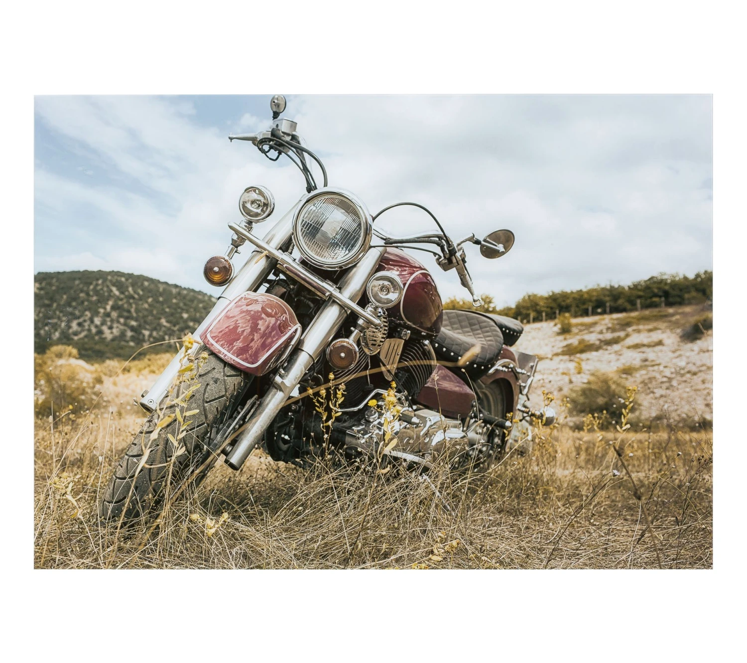 Que diriez-vous d’un road trip sur la route 66 ? Ce tableau multicolore représentant une moto américaine vous invite au dépaysement. Il est idéal pour composer une décoration vintage et originale, accompagné d’accessoires typiques. Ce tableau peut être associé à d’autres ?uvres de la même collection.