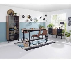 L’allure urbaine du tabouret de bar Romane convient idéalement à une décoration vintage. Doté d’une assise et d’un dossier en tissu imitation cuir vieilli, il se caractérise par un piètement en acier recouvert d’époxy noir. Avec ses matières rappelant le style brut, ce tabouret s’associe au métal, au béton ciré et aux briques.