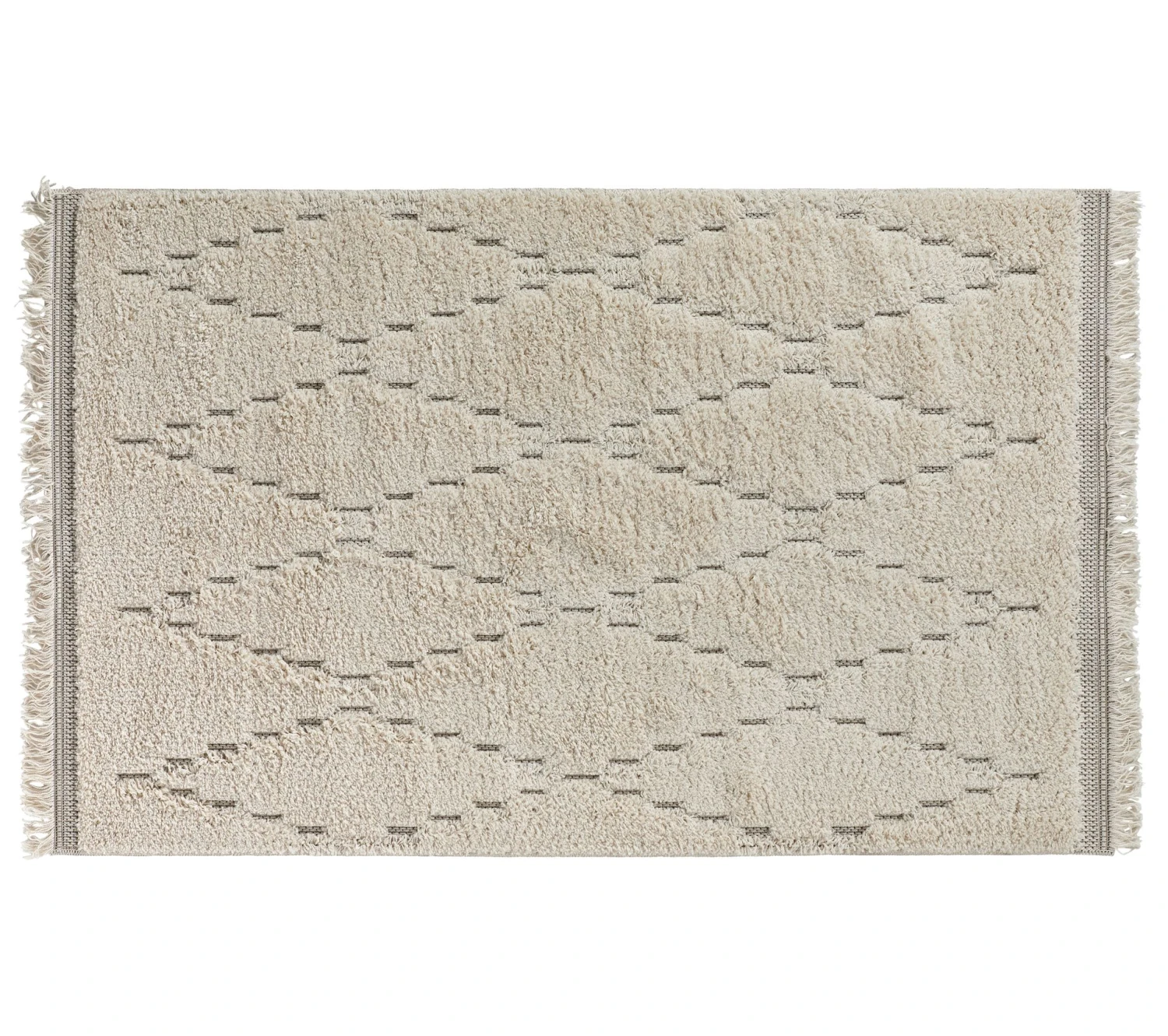 Ce tapis écru porte des losanges tissés de couleurs contrastées. Ce tapis à motifs géométriques est parfait pour habiller un salon ou se place sous une table dans la salle à manger. Avec sa forme rectangulaire, il peut se placer facilement dans une pièce. Sa couleur écrue lui permet de s’accorder avec des murs colorés ou neutres. Ce tapis berbère s’installe dans un intérieur contemporain, bohème ou rustique.