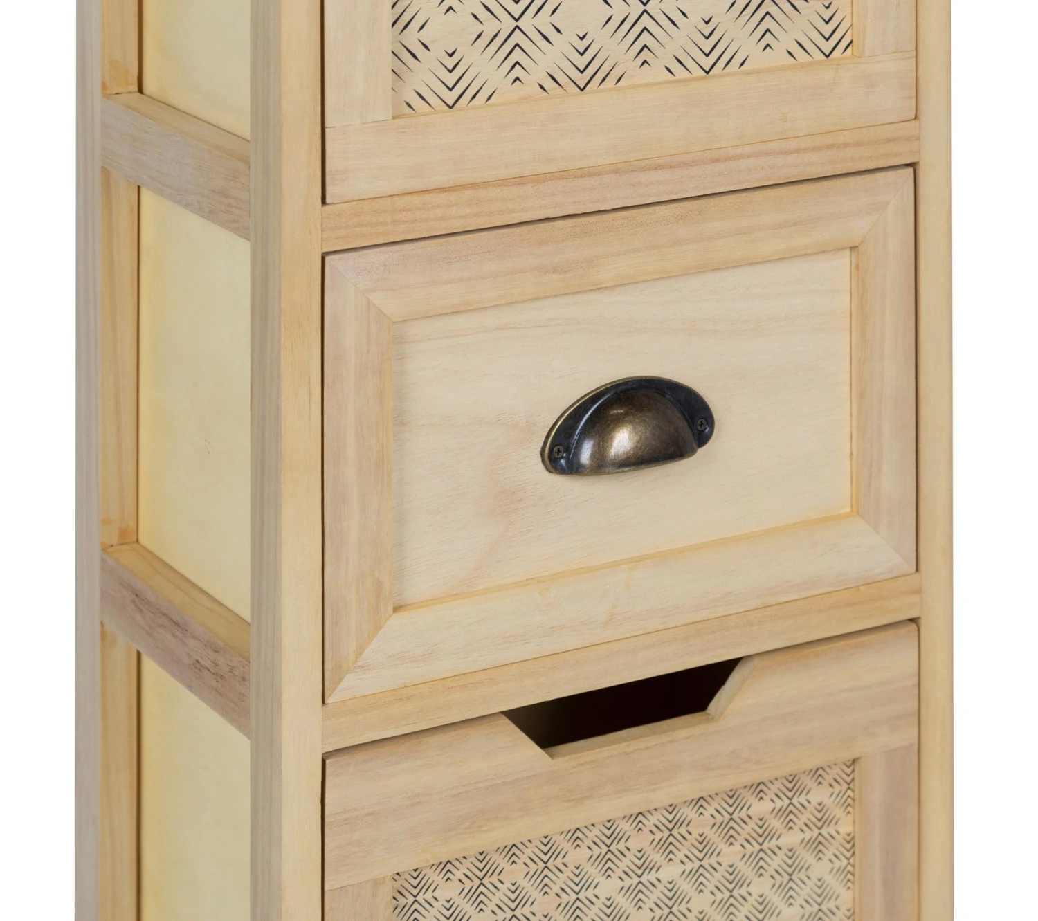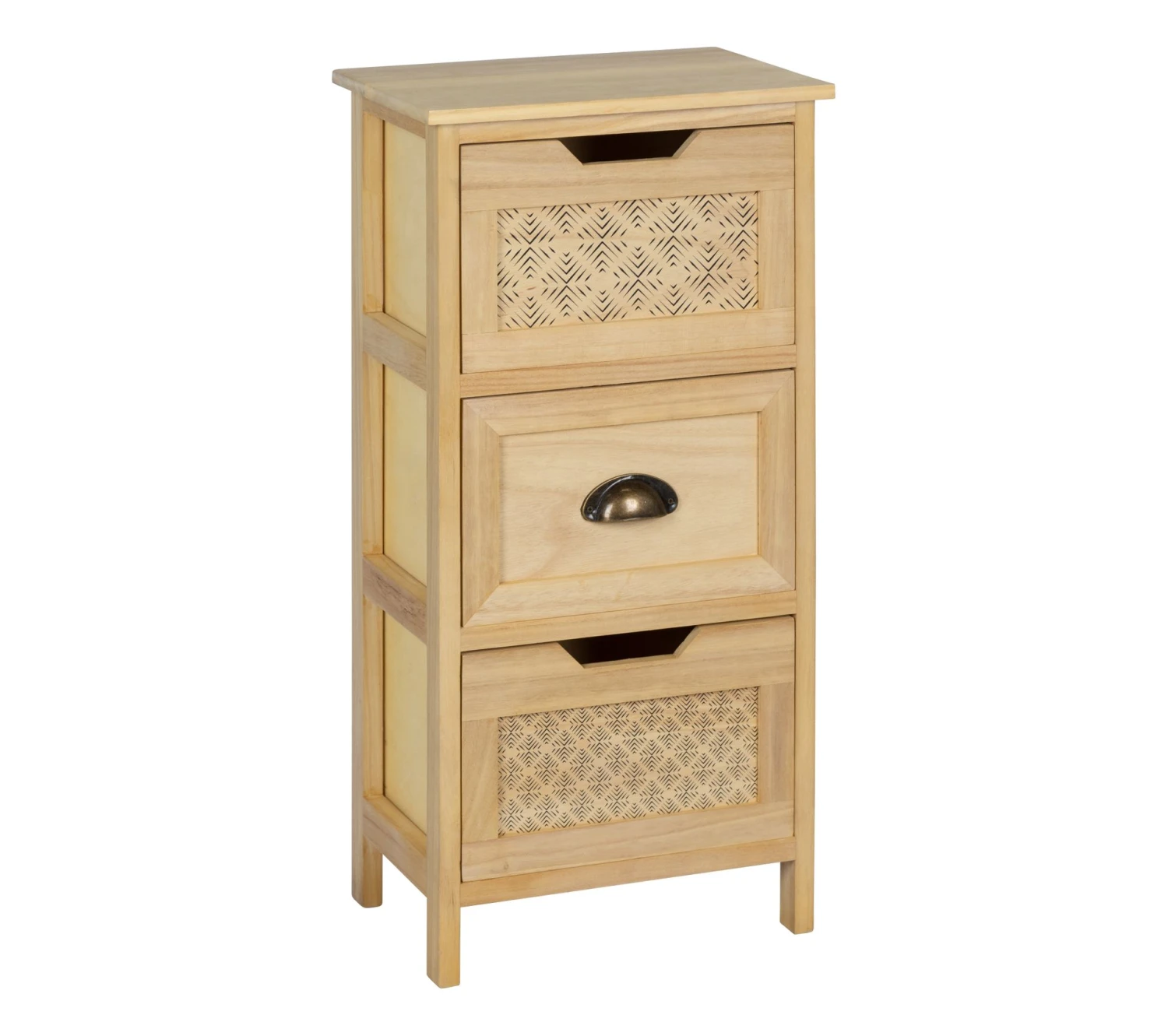 - Structure Meuble d’appoint 3 tiroirs en paulownia et tiroirs en bois contreplaqué.